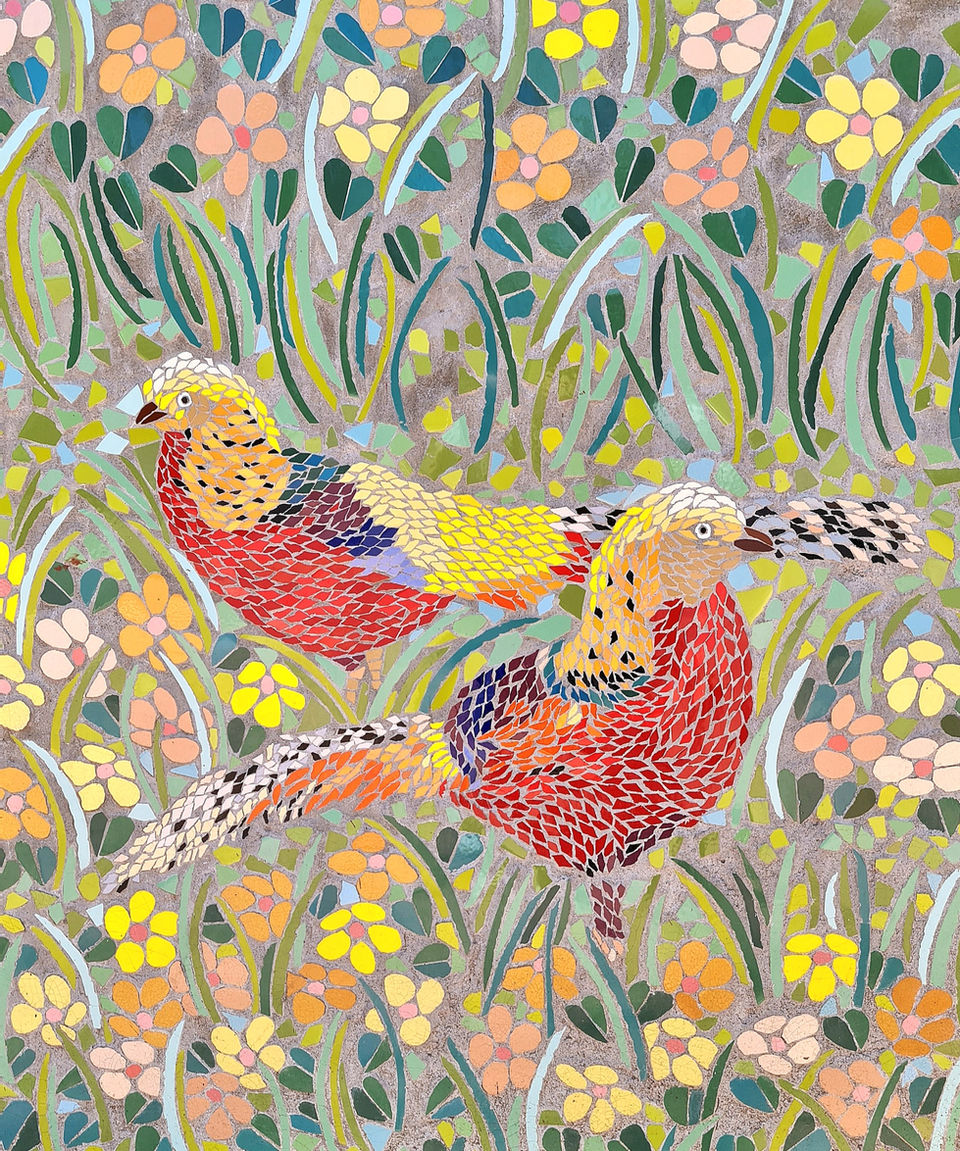 Mural Musivo realizado con la técnica de mosaico, incrustación en hormigón , terminación con mortero pigmentado, materiales ceramicos, 6 m2